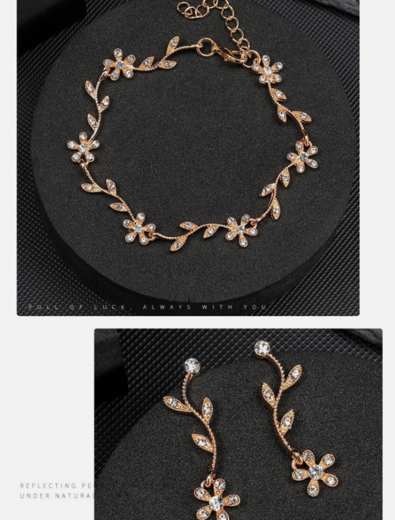 Swarovski Crystal Bridal Gold Necklace Earrings Bracelet Set